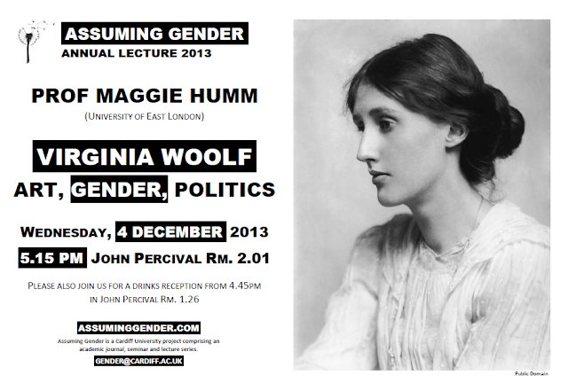 Please join us on Wednesday, 4 December, for the fifth Assuming Gender Annual Lecture. Prof Maggie Humm of UEL will be speaking on Virginia Woolf, Art, Gender, and Politics. The talk will take place at 5.15 in the John Percival building, room 2.01. This event is free and open to all!Assuming Gender Annual Lecture 2012